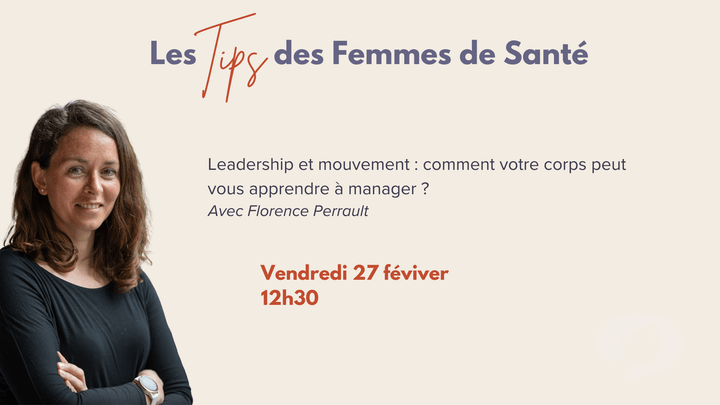 Rendez-vous le 27 février 2026 à 12h30 pour un tips Femmes de Santé : "Leadership et mouvement : comment votre corps peut vous apprendre à manager ?" avec Florence Perrault".