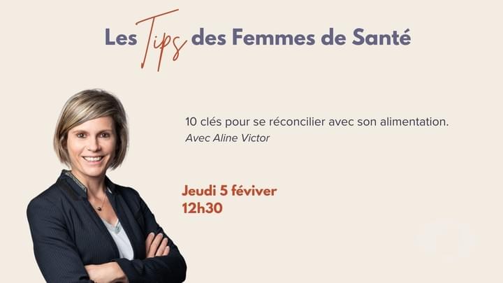 Rendez-vous le 5 février 2026 à 12h30 pour un tips Femmes de Santé : "10 clés pour se réconcillier avec son alimentation" avec Aline VICTOR.